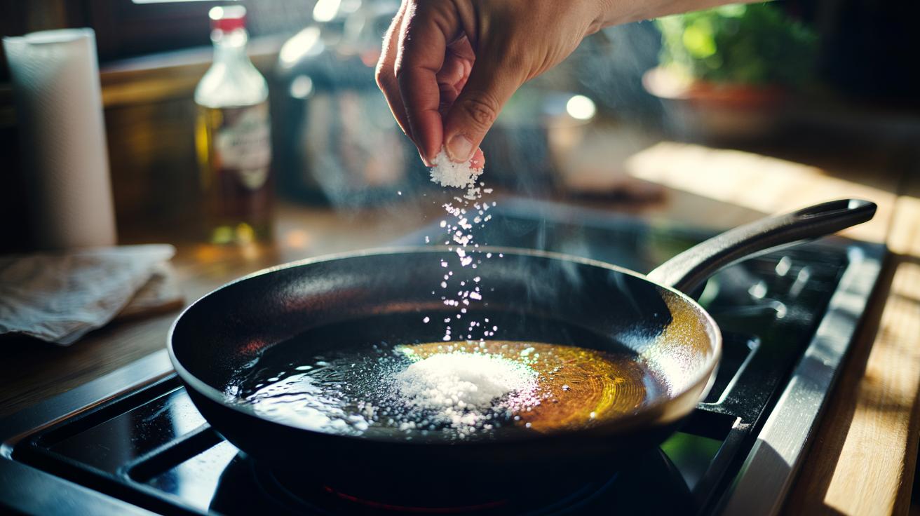 - ⚙️ Method: kill the heat, sprinkle fine table salt, wait 10–30 seconds, then wipe; for oven drips use coarse salt + vinegar; for big spills, pour off excess oil before salting.