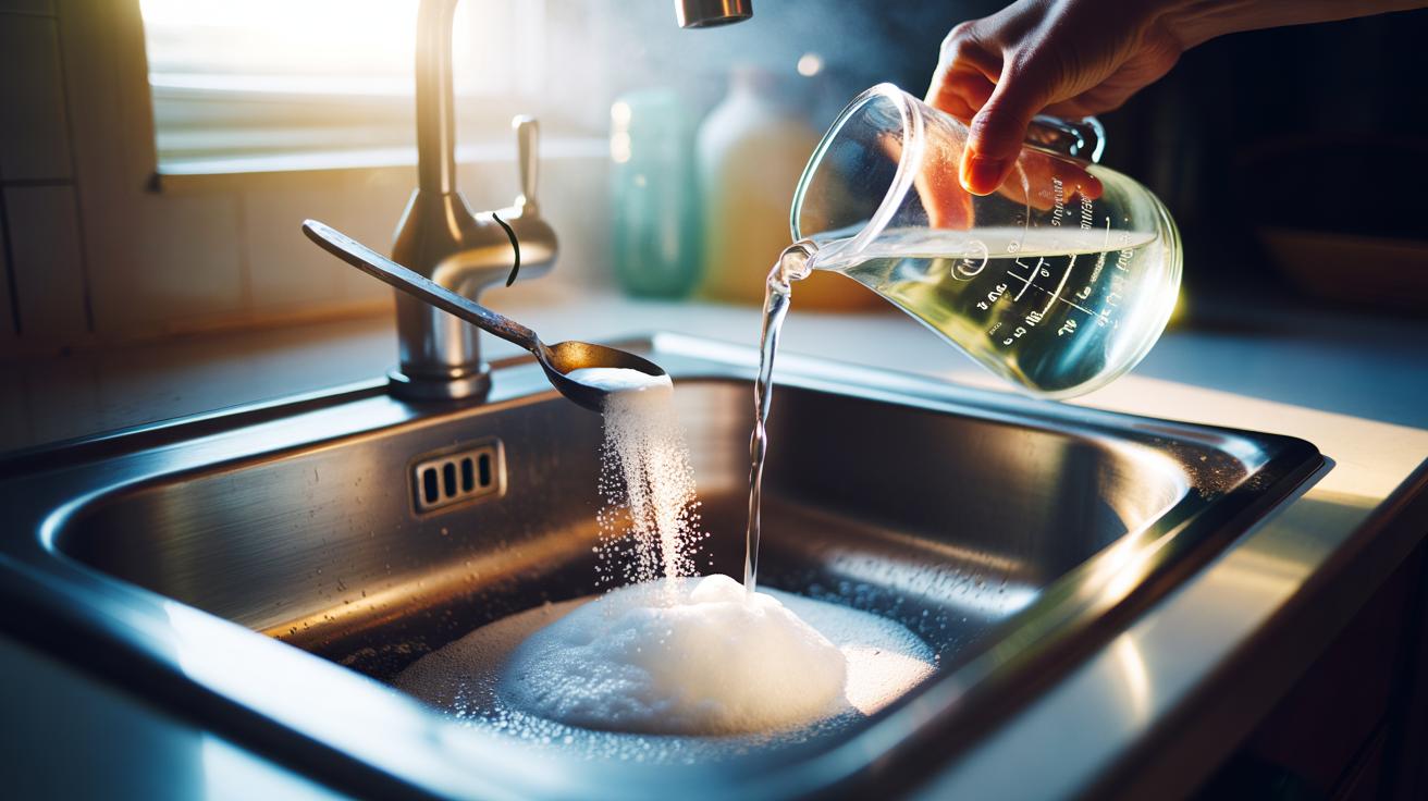 - ⏱️ 30-second method: clear standing water, add 1/2 cup baking soda, pour 1/2 cup warm vinegar, cover 5–10 minutes, then flush with 1–2 litres near-boiling water; never mix with chemical drain cleaners.